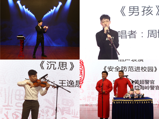 聯歡會節目融合歌曲、舞蹈、語言表演、魔術、器樂等多種風格和形式,向觀眾繪就了一幅輝煌壯麗的光影畫卷,生動展現出百十滬江園在校園文化藝術建設過程中所取得的最新成果,將現場氛圍推向高潮,全體師生積極互動共同參與有趣的現場游戲,大家無不沉浸其中,而演出間歇趣味盎然的游戲和抽獎環節更是令現場歡聲笑語不斷。此外,長白派出所警官還精心準備了相聲《安全防范進校園》,用詼諧幽默的方式科普假期安全小貼士。