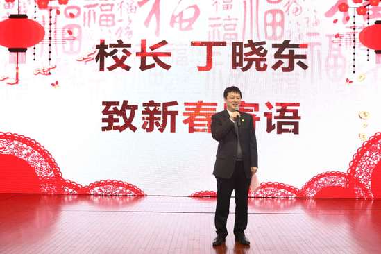 校長丁曉東在聯歡會伊始發表新年致辭。丁校長心系留校學生,他叮囑大家要牢記兩個詞“安全”和“掛念”。安全不僅僅是防火防盜防欺詐,還包括生理安全、生活安全、旅途安全,最重要的是堅守底線——政治安全;而掛念則是告訴大家不論何時、身處何地,都要掛念親人、掛念朋友,掛念別人的人也將被別人掛念著。