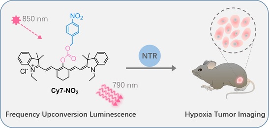 癌癥是目前影響人類壽命的主要因素,對癌癥的治療,除了手術以外,通常采用放療或化療的治療形式。但是,在治療的過程中,缺血缺氧腫瘤,即所謂的乏氧腫瘤對放化療敏感性較低,從而造成放化治療療效降低甚至無效。因此,在放化療之前,對腫瘤缺氧程度的評判顯得尤為重要,其中檢測腫瘤缺氧標志物是一種簡單有效的評判腫瘤缺氧程度的方式。在眾多乏氧腫瘤標志物中,硝基還原酶在大部分缺氧腫瘤中能大大表達。繆教授團隊通過采用近紅外熒光染料為發光報告中心,加以硝基還原酶檢測基團修飾,得到了近紅外光學響應的檢測探針,通過獨特的頻率上轉換檢測方式,得到了極低的檢測線和較高的信噪比,實現了對乏氧腫瘤在體檢測新的突破。該種檢測方法試劑制備簡單,對檢測儀器要求較低,可快速對乏氧腫瘤進行判別。該成果有望進一步應用于生物醫學檢測領域。