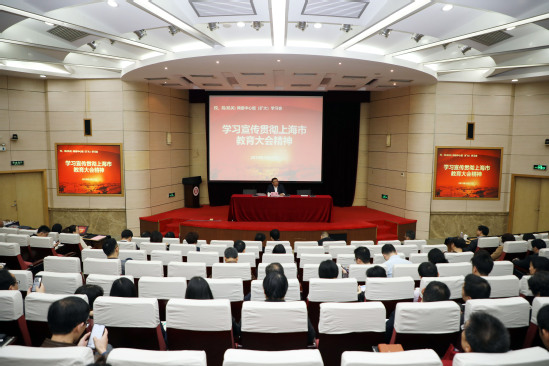 3月22日,上海市教育大會(huì)舉行,中共中央政治局委員、上海市委書記李強(qiáng),教育部黨組書記、部長陳寶生出席會(huì)議并講話。為深入學(xué)習(xí)貫徹上海市教育大會(huì)精神,3月27日下午,學(xué)校在綜合樓報(bào)告廳舉行校、院(機(jī)關(guān))兩級(jí)中心組(擴(kuò)大)學(xué)習(xí)會(huì),校黨委書記吳松傳達(dá)大會(huì)精神,兩級(jí)中心組成員、全體正教授參加會(huì)議。