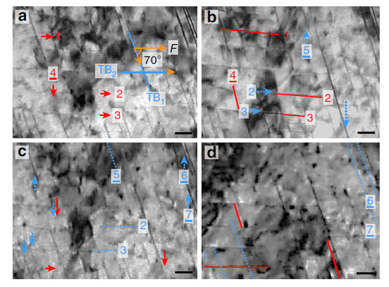 納米孿晶有望解決材料強(qiáng)韌性矛盾這一科學(xué)難題。不同尺度孿晶的變形機(jī)制是控制強(qiáng)度-塑性協(xié)同關(guān)系的主導(dǎo)因素。因此,微納尺度孿晶變形行為的解析對微觀結(jié)構(gòu)的設(shè)計(jì)和高性能材料的制備具有重要意義。本研究工作將透射電鏡下的原位拉伸試驗(yàn)與位錯基理論模型和分子動力學(xué)模擬相結(jié)合,揭示了孿晶變形的尺度效應(yīng),并建立了幾納米到幾百納米孿晶變形圖譜。原位拉伸實(shí)驗(yàn)發(fā)現(xiàn)孿晶變形存在兩個臨界尺度:當(dāng)孿晶尺度小于5 nm時,以一級孿晶的孿晶化和退孿晶化為主;當(dāng)孿晶尺度為5 - 129 nm時,由一級孿晶變形轉(zhuǎn)變?yōu)槎墝\晶變形;當(dāng)孿晶尺度大于129 nm時,以一級孿晶內(nèi)部的位錯運(yùn)動為主。力學(xué)模擬和分子動力學(xué)模擬結(jié)果與原位觀察的尺度效應(yīng)高度一致,闡明了由不全位錯滑移引起的內(nèi)稟機(jī)制和演變過程。該工作對于先進(jìn)高強(qiáng)高韌鋼的結(jié)構(gòu)設(shè)計(jì)和輕量化應(yīng)用有重要意義。該工作得到國家自然科學(xué)基金委、上海市科委項(xiàng)目資助。