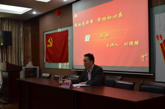 4月12日下午,理學院黨委書記劉德強將“學思踐悟”黨的十九大精神及黨的理論知識融入畢業生黨員主題教育中,為畢業生黨員上“最后一節黨課”,加強黨性修養。劉書記以“什么是中國共產黨黨員”開篇與畢業生黨員進行親切交流,圍繞“不忘初心 牢記使命”與大家分享自己的人生經歷,并對畢業生黨員提出要求:要提高自身素養,做政治合格的優秀黨員;要有敢于亮劍的精神,隨時隨地展現黨員身份,體現自身價值;要堅定理想信念,志存高遠。最后,劉書記用“珍惜”一詞送予大家,珍惜當下,展望未來,表達出對畢業生黨員的美好祝福。