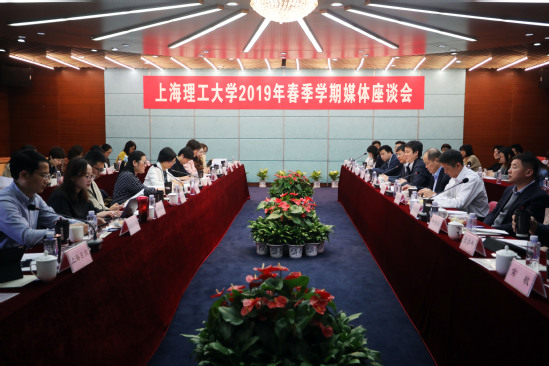 4月18日上午,上海理工大學2019年春季學期媒體座談會在圖文中心第一會議室舉行。來自人民日報、新華社、光明日報、中國青年報、中國教育報、中國新聞網、解放日報、文匯報等22家中央及地方媒體的記者出席座談會。校長丁曉東,相關職能部處負責人及教師代表與會。會議由校黨委副書記、紀委書記劉道平主持。