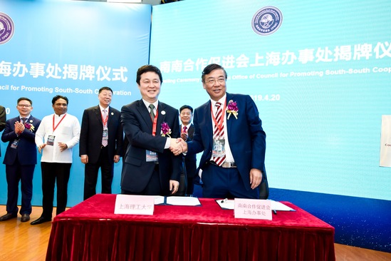 呂新華和周漢民共同為南南合作促進會上海辦事處揭牌,丁曉東和洪涌清分別代表上海理工大學與南南合作促進會上海辦事處簽訂戰略合作框架協議。上海市人民對外友好協會副會長李群策、上海市浦東新區政治協商會議副主席王正泉、中國(上海)自由貿易試驗區管理委員會張江管理局副局長吳俊、哈薩克斯坦駐上海總領事克拉把葉夫.佐齊漢等嘉賓共同見證了揭牌和簽約儀式。