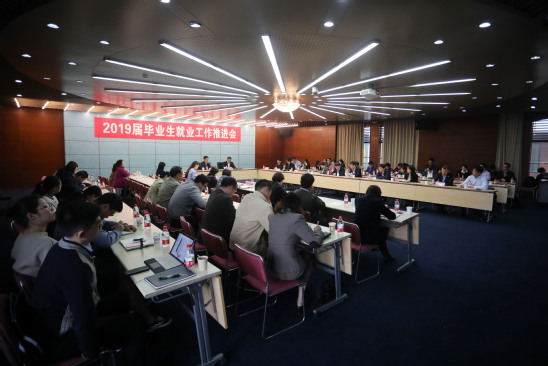 4月26日上午,學校在圖文信息中心第一會議室舉行2019屆畢業生就業工作推進會。校黨委副書記、校長丁曉東,學校就業工作領導小組成員,各學院黨政負責人、學生工作負責人及畢業班輔導員參加會議。會議由校黨委副書記、副校長盛春主持。