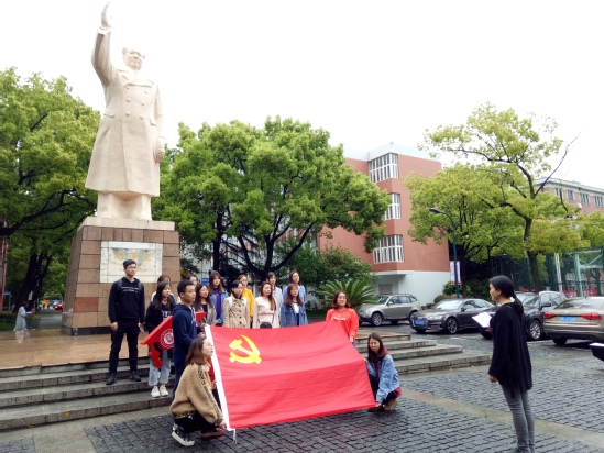 4月29日下午2點(diǎn),細(xì)雨蒙蒙,空氣中彌漫著青春的氣息,正值五四青年節(jié)的到來(lái)之際,外語(yǔ)學(xué)院研究生黨員和積極分子在支部書(shū)記唐瑾老師帶領(lǐng)下,在毛主席像前進(jìn)行莊嚴(yán)的入黨宣誓。同學(xué)們托起鮮紅的黨旗,舉起右手握緊拳頭,莊嚴(yán)地進(jìn)行入黨宣誓。“我志愿加入中國(guó)共產(chǎn)黨,擁護(hù)黨的綱領(lǐng),遵守黨的章程,履行黨員義務(wù),執(zhí)行黨的決定,嚴(yán)守黨的紀(jì)律,保守黨的秘密,對(duì)黨忠誠(chéng),積極工作,為共產(chǎn)主義奮斗終身,隨時(shí)準(zhǔn)備為黨和人民犧牲一切,永不叛黨。”