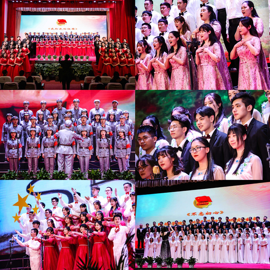 表彰大會結束后,五四合唱主題展演拉開帷幕。《我的祖國》、《我愛你中國》、《天耀中華》……嘹亮的歌聲展現出我校學子的朝氣,展現出新時代青年的精神面貌。伴隨著全體與會領導、師生齊聲合唱的《不忘初心》,上海理工大學紀念五四運動一百周年暨五四主題歌會圓滿落幕。