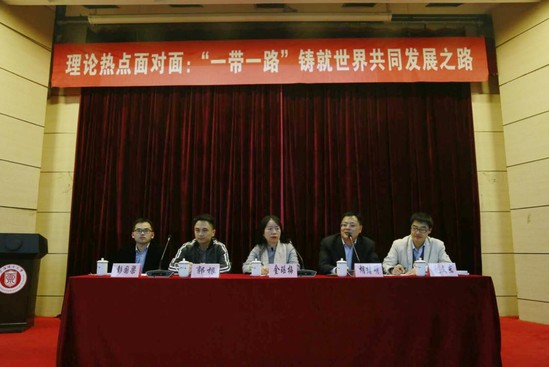 為深入貫徹習近平新時代中國特色社會主義思想和黨的十九大精神,更好幫助在校大學生理解“一帶一路”倡議的背景、內涵、意義及相關進展等,馬克思主義學院于4月30日晚上在綜合樓報告廳開展“理論熱點面對面:‘一帶一路’鑄就世界共同發展之路”師生專題交流活動,就學生在學習貫徹過程中遇到的熱點難點問題進行深入交流。馬克思主義學院金瑤梅院長、胡緒明副院長、郭根副教授、趙文東博士以及管理學院輔導員彭國梁等受邀出席,來自各學院的200余名學生參與本次活動。
