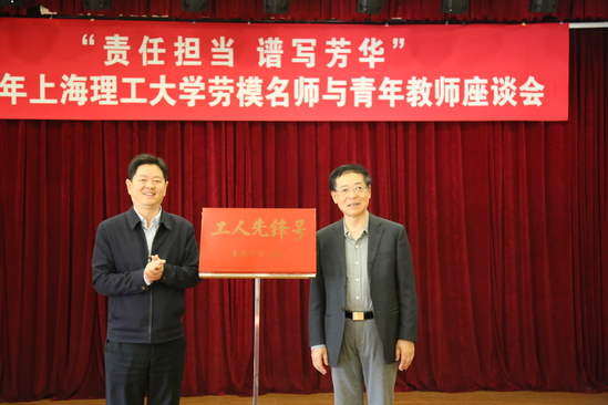 會上,首先由孫躍東和莊松林為“上海市工人先鋒號”揭牌。揭牌儀式后,勞模、名師分別結合自己的科研經歷、工作閱歷、育人體會等暢談人生感悟。楊茉教授、張淑平教授和朱亦鳴教授先后和青年教師分享心得,勉勵青年教師要不忘初心,持之以恒,愛崗敬業,努力成為學生的良師益友,促進教學相長;要精益求精,追求卓越,保持良好的心態,在教學和科研上齊頭并進,為學校發展添磚加瓦。