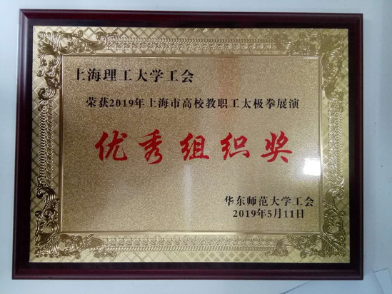 5月11日,由華東師范大學工會主辦,華東師范大學教職工太極拳協會承辦的“上海市高校教職工太極拳展演”在華東師范大學體育館二樓舉行。我校太極拳協會共計18人參加了本次展演活動,并獲得優秀組織獎。