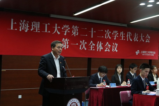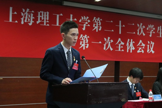 上海理工大學第二十二次學生代表大會第一次全體會議上,校學生會主席杜嘉源作《上海理工大學第二十一屆校學生會工作報告》,從思想建設、組織改革、權益維護、活動開展四個方面對學生會的工作進行總結;校學生會副主席施滬彬受上海理工大學第二十二次學生代表大會提案工作委員會委托作《上海理工大學第二十二次學生代表大會提案工作報告》。