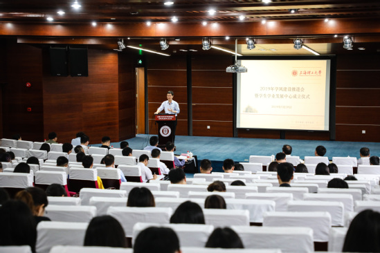 為進一步加強學生學業發展指導工作,推進優良學風建設,統籌全校資源,搭建學生學業困難幫扶體系和能力提升體系,5月28日上午,上海理工大學2019年學風建設推進會暨學生學業發展中心成立儀式在圖文信息中心一樓報告廳舉行。校長丁曉東,校黨委副書記、副校長盛春,副校長張華出席。學校相關職能部門負責人、各學院院長、教學副院長、學生工作負責人以及全體專兼職輔導員和學生代表參加。會議由學生工作部(處)部(處)長牛翔宇主持。