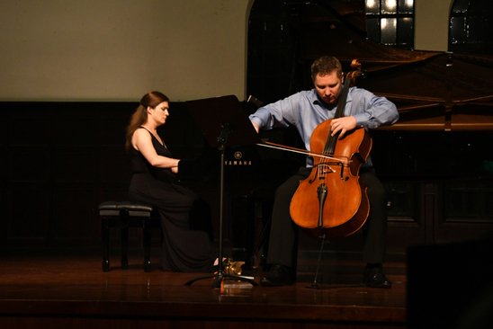 5月30號晚上七點,鋼琴大提琴二重奏音樂會于我校音樂堂舉行,兩位音樂家給現場觀眾帶來了精彩表演,演奏了Efrian Amaya、韋伯恩、Arvo Part及貝多芬的曲目。整個演奏過程分為四個部分,每一個部分都給聆聽著帶來了不一樣的感受,側耳傾聽,大提琴聲與鋼琴聲的交相輝映,音樂似乎是由遠到近、由小到大,一陣陣輕柔婉轉的“序曲”過后,是無比強烈的顫音,一個個激昂的音符敲打著聽眾的心葉,優雅歡快。一小時的音樂會到了尾聲,觀眾們的掌聲久久不息,向音樂家們致以感謝,感謝他們帶來美妙的演奏。