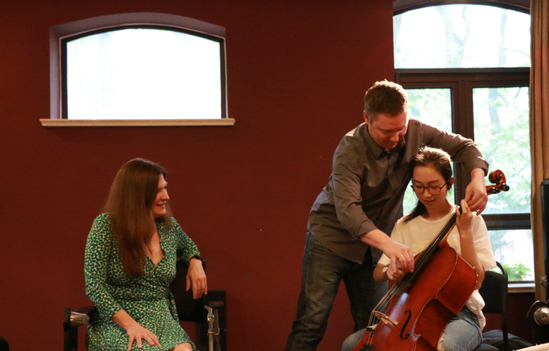 5月30日下午,Dianna Anderson及Erik Anderson還與同學們在美國文化交流中心開展了交流活動。兩位音樂家對同學們的提問耐心地一一作答。Erik Anderosn在交流會上拉起大提琴,向同學們展示了大提琴的魅力。Dianna Anderson還應同學們的要求,和著大提琴低沉婉轉的音色歌唱。在一片歡聲笑語之中,交流會活動圓滿結束。