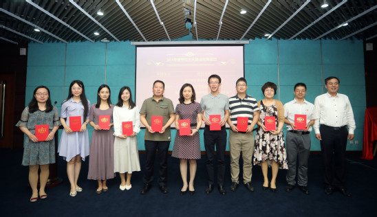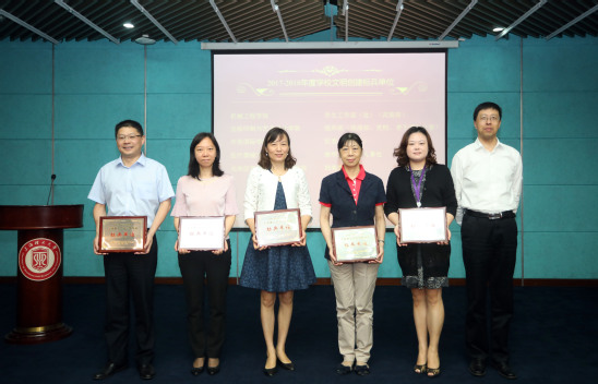 會議表彰了2017-2018年度學校文明創建標兵單位和先進單位、2018年文化建設優秀項目。管理學院、出版學院、理學院負責人分別就學院文明文化工作經驗做了交流分享。作了題為《技術+藝術+管理:學院線上文明建設的抓手》、《“五大延伸”助力高水平大學文化建設》、《立足中心工作 提升學院“格物致知、理崇至真”文化內涵》的發言。會上,黨委宣傳部和團委主要負責人為上海理工大學網絡文化發展中心揭牌。