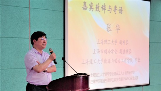徐偉院長代表中國暖通空調學會宣讀了建筑學會對我校傅伊珺同學及指導教師呂靜教授獲第三屆世界暖通空調學生科技競賽一等獎(唯一)的賀信。蔣立董事長從企業的角度講述了對大學生的期望,希望大學生要腳踏實地,一步一個腳印,打好基礎,立志長遠。張旭教授介紹了世界暖通空調學生科技競賽的競賽規則,剖析了對參賽選手的評判規則。
