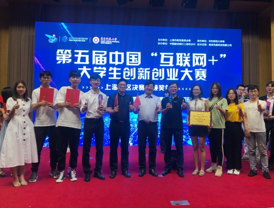 7月15日,“建行杯”第五屆中國“互聯(lián)網(wǎng)+”大學生創(chuàng)新創(chuàng)業(yè)大賽上海賽區(qū)決賽暨頒獎典禮在華東師范大學舉行。上海市教委副主任毛麗娟,市教科院院長、高教處處長桑標,我校副校長張華以及多位資深專家評委出席頒獎儀式。我校創(chuàng)業(yè)團隊獲金獎2項、銀獎7項、銅獎6項及“最具人氣獎”的好成績,金獎數(shù)列第五,僅次于華師大、復旦、交大、同濟,此外我校榮獲“優(yōu)秀組織獎”。我校金獎項目李涵團隊的“微翌創(chuàng)新——全球首個5G 無人機VR全景直播方案提供商”作為決賽“最具人氣獎”項目在頒獎典禮上進行了展示。