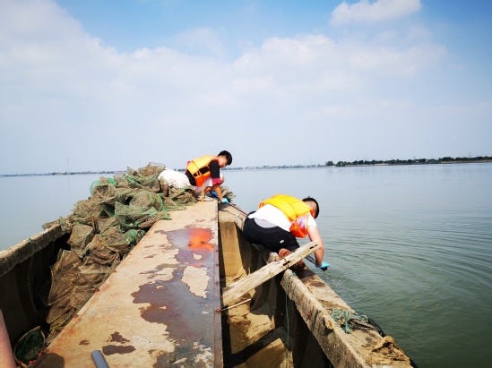 實踐團隊兵分兩路,沿著嘉善—青浦—吳江區和嘉善—平湖—松江—金山區兩條路線,進行為期一個月的飲用水源地調查。采集水樣、記錄數據、實驗室分析、周邊環境調研、問卷調查……這一整套流程里,僅僅是采集水樣一項工作就讓隊員們經歷了重重“關卡”。由于復雜的水系與道路綜合交錯,實地環境與衛星地圖上顯示并不完全一致,這就要求團隊現場確定采樣點。“采樣需要在湖泊邊緣及湖泊中心進行,和35℃的高溫‘親密接觸’,太陽的直射與水面的反光讓我們像在蒸桑拿。”隊員黃炯說道。