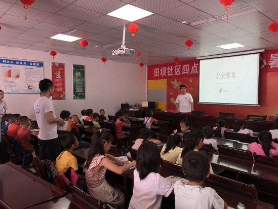 三十二排長桌、六十把座椅、百平米場地,這是貴州省湄潭縣四十余個小朋友的暑期學習課堂。在這里,光電信息與計算機工程學院筑夢小分隊化身脫貧攻堅戰的“戰士”,進行實地調研和暑托班服務。