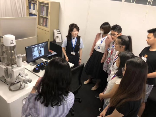 訪學團參訪了世界頂級的科學儀器生產制造商—日本電子株式會社(JEOL),有至少十三位世界各國的科學家使用該公司生產的設備而獲得諾貝爾獎,其先進的技術已然成為業界標桿。訪學團成員在工作人員的指導下操作掃描電子顯微鏡觀察頭發的顯微結構及其元素,感受顯微世界的巨大魅力。