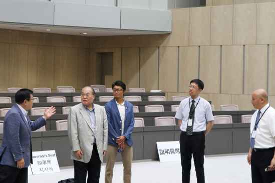 代表團第二站參觀了東京都議會廳和東京都防災中心,受到東京都副知事多羅尾先生、東京都議會副議長長橋桂一先生熱情接待。代表團在東京都選舉管理委員會委員長職務代理大木田守、東京都選舉管理委員會事務局長黑田祥之等人的陪同下參觀了東京都議會廳會議室、東京都防災中心,并聽取了關于東京都議會和東京都防災的相關介紹,學習了國際化大都市應急防范及防災處理的系統(tǒng)管理經(jīng)驗。