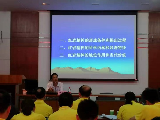 在理論教學環節,研修班特別邀請西南大學馬院唐棣宣副教授為全體學員作專題輔導報告。唐教授以“紅巖精神之信仰力量”為主題,分別從紅巖精神的形成條件和提出過程、紅巖精神的科學內涵和顯著特征、紅巖精神的地位作用和當代價值三大方面闡釋了紅巖精神的信仰力量。