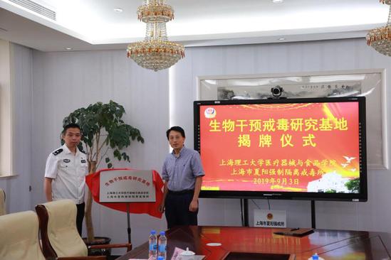 最后,雙方簽署合作協(xié)議,并共同為“生物干預(yù)戒毒研究基地”揭牌。