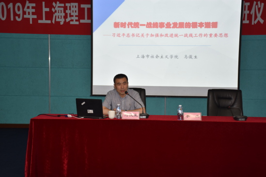 隨后,上海社會主義學(xué)院副院長馬俊生教授為學(xué)員做了題為“新時代統(tǒng)一戰(zhàn)線事業(yè)發(fā)展的根本遵循”的專題輔導(dǎo)報告。馬教授用六個“新”為貫穿,全面闡述了統(tǒng)一戰(zhàn)線法寶地位的新定位、工作方針的新發(fā)展、性質(zhì)范圍的新界定、目標任務(wù)的新方向、六大領(lǐng)域的新思路、原則方法的新要求,對習(xí)近平總書記關(guān)于加強和改進統(tǒng)一戰(zhàn)線工作的重要思想做了深入淺出的解讀,對統(tǒng)戰(zhàn)工作中的政策把握進行了傳達,同時,還結(jié)合當(dāng)前熱點問題與學(xué)員進行了精彩互動。
