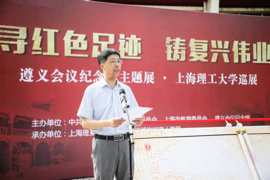 為深入開展“不忘初心、牢記使命”主題教育,弘揚(yáng)艱苦奮斗的革命精神,9月12日上午,“遵義會(huì)議、偉大轉(zhuǎn)折——遵義會(huì)議紀(jì)念館主題展覽”上海理工大學(xué)巡展拉開了序幕。本次主題展覽由中共上海市教育衛(wèi)生工作委員會(huì)、上海市教育委員會(huì)、遵義會(huì)議紀(jì)念館主辦,上海理工大學(xué)、上海高校博物館育人聯(lián)盟承辦,以“尋紅色足跡鑄復(fù)興偉業(yè)”為主題。市教衛(wèi)工作黨委副書記、市教委副主任李昕,遵義市委常委、副市長、上海市第三批援黔聯(lián)絡(luò)組組長尼冰,遵義會(huì)議紀(jì)念館館長陳松,市教委德育處處長沙軍,校領(lǐng)導(dǎo)吳堅(jiān)勇、丁曉東、劉道平、盛春、劉平、趙明、張華,校黨委常委、組織部長孫紅,校黨委常委、宣傳部長葉磊和全體中層正職干部出席開幕式,開幕式由校黨委副書記孫躍東主持。