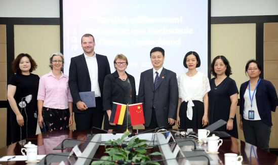 9月16日,德國科堡應用技術與藝術大學校長Christiane Fritze教授攜該??票?上理工碩士合作項目協(xié)調(diào)員Inga Emmerling博士及科技成果轉化主管Markus Neufeld博士到訪我校,校長丁曉東、副校長蔡永蓮會見來賓。國際交流處、光電學院相關負責人參與座談。