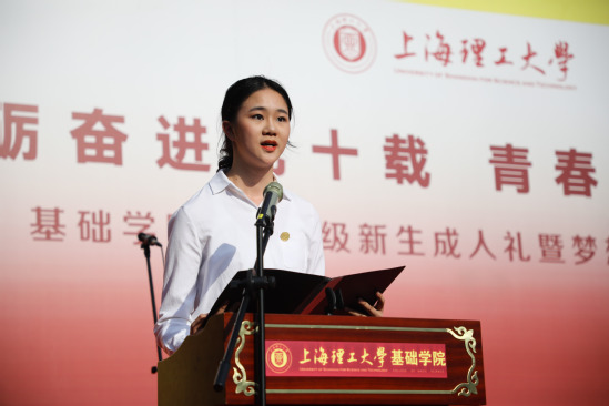 校黨委副書記、副校長盛春在致辭中對跨入成人行列的新一代上理學(xué)子致以最美好的祝福,他希望能夠通過儀式教育,融合公民價(jià)值要求與校訓(xùn)精神,培養(yǎng)當(dāng)代青年愛國主義情懷、強(qiáng)化公民意識,期望同學(xué)們通過成人禮,深化對成人角色的認(rèn)同與歸屬,認(rèn)識到作為成年人的責(zé)任。