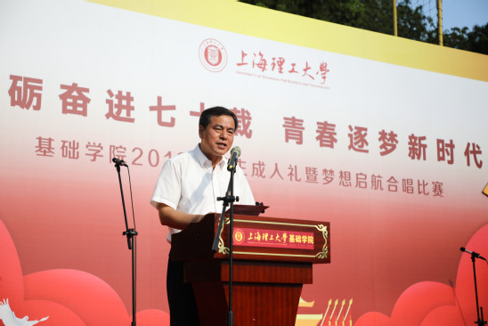 為慶祝新中國成立七十周年,深入學(xué)習(xí)貫徹習(xí)近平新時代中國特色社會主義思想和黨的十九大精神,激勵學(xué)子為實(shí)現(xiàn)中華民族偉大復(fù)興的“中國夢”不懈奮斗,9月20日,上海理工大學(xué)基礎(chǔ)學(xué)院舉行“砥礪奮進(jìn)七十載 青春逐夢新時代”2019級新生成人禮暨夢想啟航合唱比賽。校黨委書記吳堅(jiān)勇,黨委副書記、副校長盛春,學(xué)生工作部(處)、團(tuán)委、相關(guān)專業(yè)學(xué)院領(lǐng)導(dǎo)及基礎(chǔ)學(xué)院全體師生參加了此次活動。