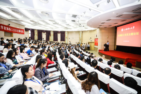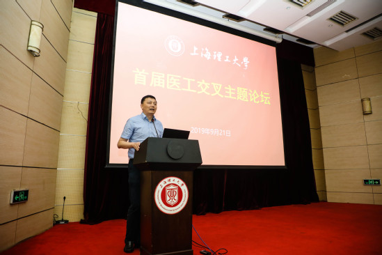 9月21日上午,我校主辦的首屆醫工交叉主題論壇在學校綜合樓報告廳舉行。上海市科委生物醫藥處處長曹宏明,上海市教委科技處處長許開宇,上海交通大學醫學院黨委副書記、副院長吳韜,上海市生物醫藥科技產業促進中心主任傅大煦,上海長征醫院骨科醫院院長助理劉鐵龍教授等嘉賓應邀出席論壇。我校黨委書記吳堅勇、中國工程院院士莊松林、副校長劉平參加論壇,校辦、科技處、協同創新研究院、研究生院等職能部門、相關學院、大學科技園、部分醫療器械企業負責人及首批醫工交叉項目醫生、教師與研究生代表等300余人共同參加。論壇由劉平主持。
