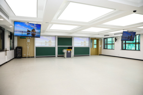 當傳統教室中的木質桌椅、模糊投影布、昏黃燈管等固定標配,升級為移動桌椅、超清投影白板、多模式智能燈時,教學環境瞬間由沉悶古板變得敞亮溫馨,精致體現在每一個細節之處。除了教室的升級改造,門廳、走廊等公共空間也獨具匠心,采用白色鋁方通吊頂、深灰色地坪、白色高耐污膜墻面、原木色教室門等,整體效果現代、簡約。