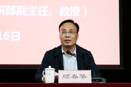 校黨委副書記顧春華主持報告會并講話