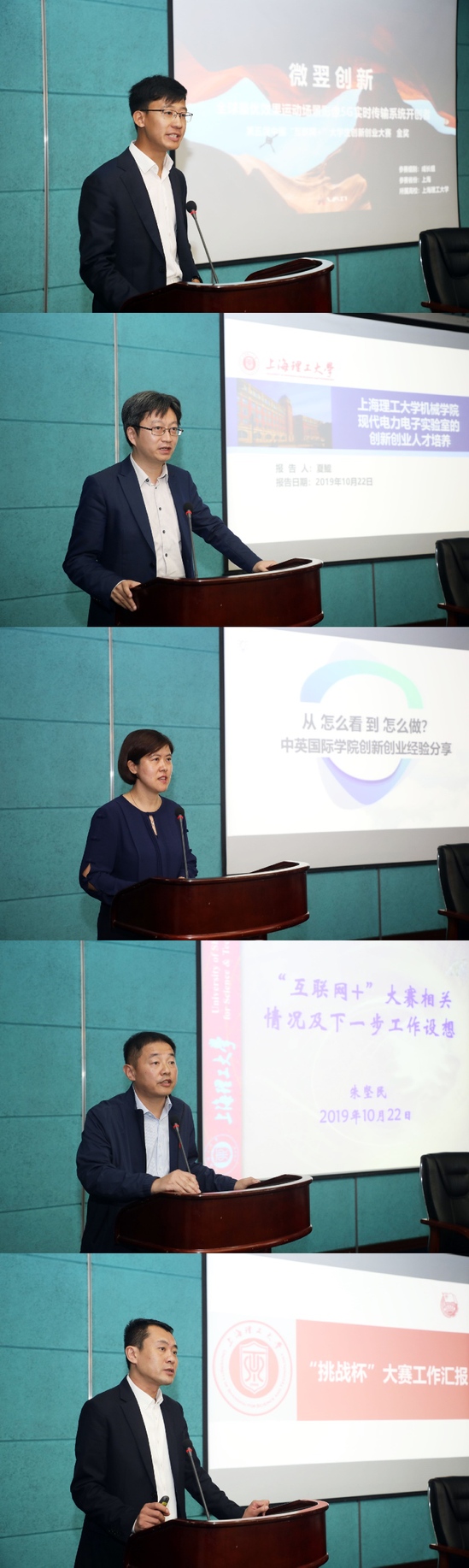 首先,2019年 “互聯(lián)網(wǎng)+”大賽金獎(jiǎng)獲獎(jiǎng)團(tuán)隊(duì)代表李涵同學(xué)作項(xiàng)目展示與感想分享,大賽指導(dǎo)老師、創(chuàng)新創(chuàng)業(yè)學(xué)院副院長夏鯤交流經(jīng)驗(yàn)體會(huì);中英國際學(xué)院常務(wù)副院長劉芹匯報(bào)學(xué)院創(chuàng)新創(chuàng)業(yè)工作。隨后,教務(wù)處處長朱堅(jiān)民、團(tuán)委書記曲德強(qiáng)分別就“互聯(lián)網(wǎng)+”大賽以及“挑戰(zhàn)杯”大賽相關(guān)情況及下一步工作設(shè)想進(jìn)行了專題報(bào)告。與會(huì)人員就創(chuàng)新創(chuàng)業(yè)工作的實(shí)踐體會(huì)、經(jīng)驗(yàn)做法、政策建議等展開熱烈討論。