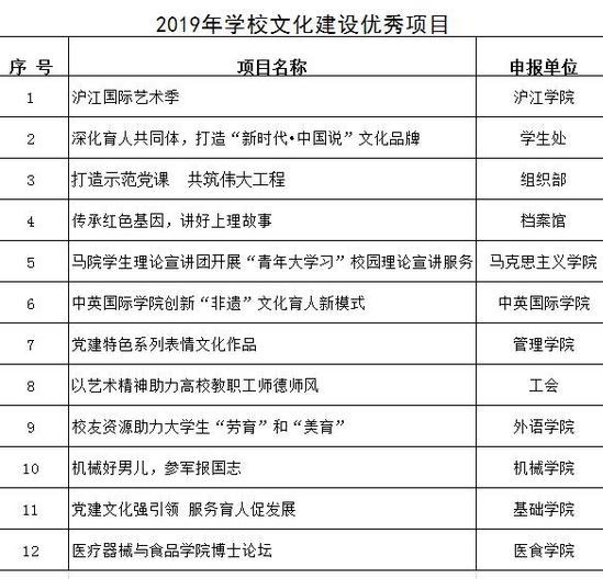 附件1:2019年學校文化建設優秀項目名單
