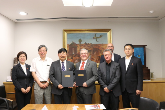 在澳大利亞,代表團首先訪問了埃迪斯·科文大學,與該校校長Steve Chapman、副校長王嵬等進行了親切地會談,并簽署了兩??蒲泻献鲄f議備忘錄。隨后分別與研究生院、人文與藝術學院代表進行了洽談,雙方就兩??蒲泻献骶唧w實施形式和方案進行了溝通,并提出在國家留基委項目申請、澳大利亞文學文化研究、博士生培養方面可以開展更加緊密的合作。代表團還參觀了該校播音實踐教學中心、藝術設計中心以及其他教學設施,并會見了在該校就讀聯合培養博士師資項目的外語學院孫海影老師和已獲得該校教育學博士學位的外語學院2010級研究生金惠芬。我校與澳大利亞埃迪斯·科文大學有著20余年的合作歷史,曾合作舉辦五屆澳大利亞文化周活動,并于今年上半年簽署了聯合培養博士師資協議。