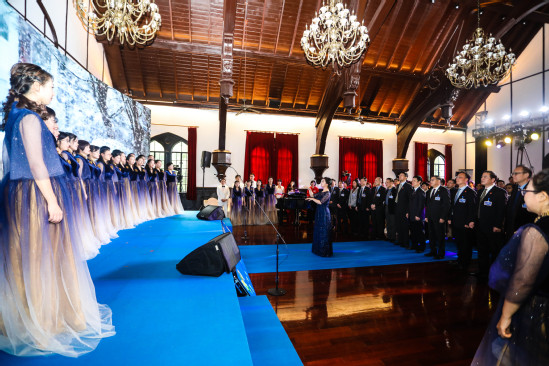 答謝會簽到處,每位受邀嘉賓都會收到來自學校的一份祝福,是一枚金光閃耀的金色徽章,取名“金桂花”,代表了上理人工貴求實、甘于奉獻、清潔高雅、團結向上的氣質;其中心為學校代表性歷史建筑大禮堂的海棠花窗造型,代表學校開放合作、兼容并包的辦學理念;學校英文簡稱USST嵌入窗欞之中,代表學校國際化辦學特色;徽章通體為金色,代表成熟豐收、碩果累累。在合影墻前,受邀師生代表佩戴著金桂花與校領導合影留念,定格溫馨瞬間,留下美好記憶。