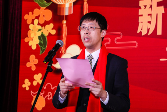 校黨委書記吳堅勇代表學校致新春賀詞。他首先向各級領導、合作單位、離退休老領導、老同志、海內外校友以及長期以來關心支持學校發展的各界朋友,向團結奮斗的全校師生員工表示衷心的感謝和美好的祝福。他指出,過去的一年,學校以習近平新時代中國特色社會主義思想為指導,深入開展“不忘初心、牢記使命”主題教育,全面加強黨的領導,始終堅持立德樹人根本任務,不斷推進“三全育人”綜合改革。全校師生團結一心、銳意進取、爬坡跨坎、努力拼搏,在前進的道路上奮力奔跑,共同凝聚起了創建特色顯著的一流理工科大學的上理智慧和力量。吳堅勇強調,2020年是具有里程碑意義的一年,學校高水平大學建設將迎來第一輪收獲。全體上理人要堅定“為黨育人、為國育才”的初心使命,只爭朝夕、不懈奮斗、攻堅克難、善作善成;要在學校的事業發展中感受到家的溫暖,讓自己工作更安心、生活更舒心、對未來更有信心。隨后,吳堅勇攜全體校領導向所有來賓、全校師生、海內外校友、各界朋友拜年,向大家致以誠摯的新春祝福。