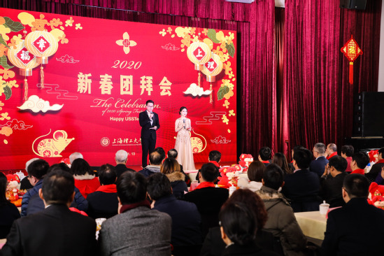 金豬辭舊,瑞鼠迎春。1月13日上午,“幸福上理”2020新春團拜會在學校小禮堂舉行。全體校領導和莊松林院士、顧敏院士,楊浦區、長白街道、定海街道領導,一校八院(所)、普陀區教育局、黃浦區儲能中學等合作單位領導,上海出版印刷高等??茖W校、上理附屬市東醫院、附屬中學、附屬初中、附屬小學、附屬實驗學校、附屬幼稚園等大學系統單位領導,學校歷任黨政領導、曾在學校工作的領導、離退休老同志,市(區)人大代表、政協委員、各民主黨派、統戰團體負責人,校辦企業相關單位負責人、學校各部門(學院)負責人和師生代表等150余人歡聚一堂,共迎新春。