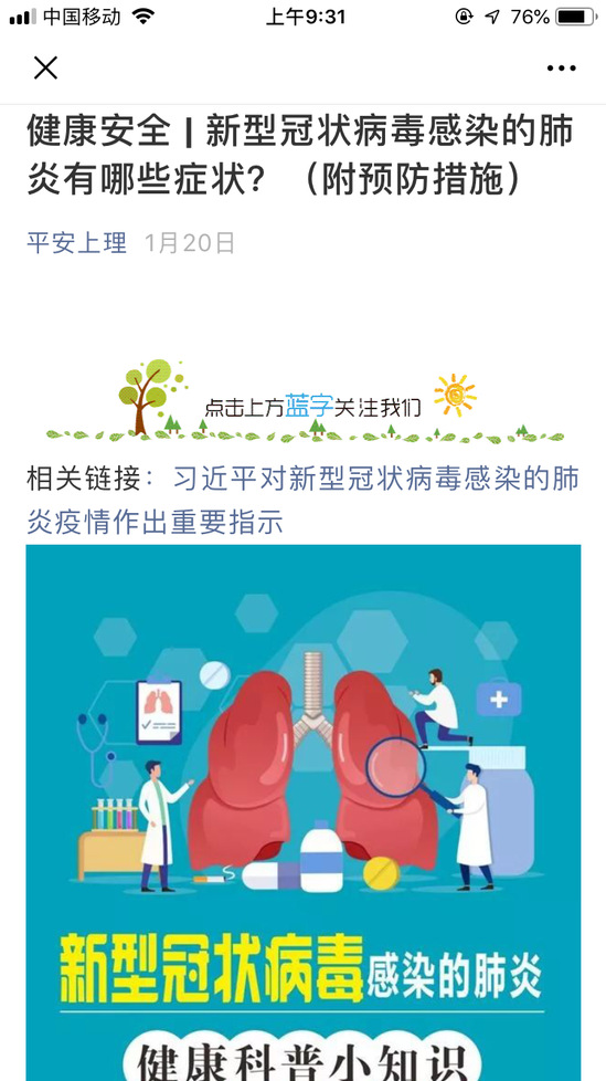 細化舉措,實行最嚴管控。為切實掐斷校外疫情傳染源向校內蔓延,保衛處緊緊圍繞校門防控主要任務,不斷加強網絡宣傳、門口阻截、校內巡守、技術防控,安全保障“6項”重點工作,1月20日,保衛處通過平安上理微信第一時間進行防控預警,連日來發布疫情防控知識22篇,總閱讀量16000人以上。