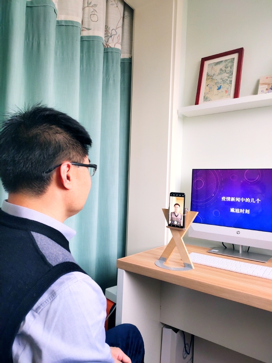 一部手機、一臺電腦、一個虛擬直播間……一堂150余人同時在線的新聞傳播學專業思政課就開始了。出版印刷與藝術設計學院傳統文化工作坊黨支部書記劉長庚老師作為一名專業課教師,選擇了一種特別的方式參與到這場“戰疫”中去——用專業知識引導同學們不信謠、不傳謠、不造謠,用科學的態度去對待網上紛繁復雜的信息。