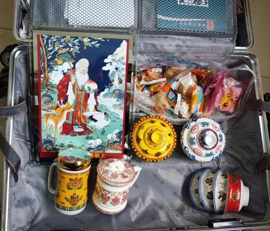 剛剛過去的雙休日晚上,她坐了30多小時的火車回到上海。到校報到第一天,她的行李箱中都是從果洛州帶來的特色禮物。除了青海特產(chǎn)牦牛肉以外,她還帶了不少具有濃郁西藏特色的茶杯。記者在白云才的行李箱中見到,在一個鏡框的畫中,一位高額頭老人一手拿著仙桃,一手拄著拐杖,身旁還有仙鶴和梅花鹿相伴。“這是‘么才讓’,寓意一生平安,萬事如意,事事順遂。”白云才告訴記者,“這也是我們畢業(yè)班給老師準備的禮物。”