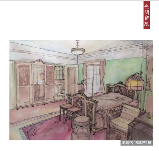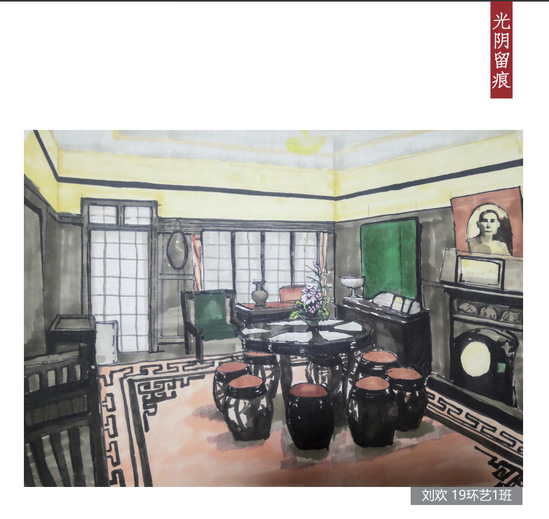 上海城建職業學院學生手繪的宋慶齡故居內景。