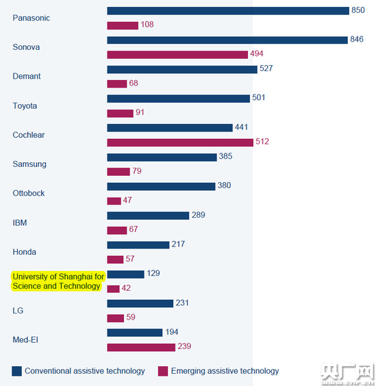 當前,中國有近百所高校從事康復工程及輔助技術領域的研究,這次的技術報告顯示,我國大學的專利總數及創新能力已經位居全球高校前列。上海理工大學是國內最早開展康復工程本科教育的高校,其康復工程創新團隊近年來共獲得授權發明專利近100項,數十項專利實現轉化,居同行前列。