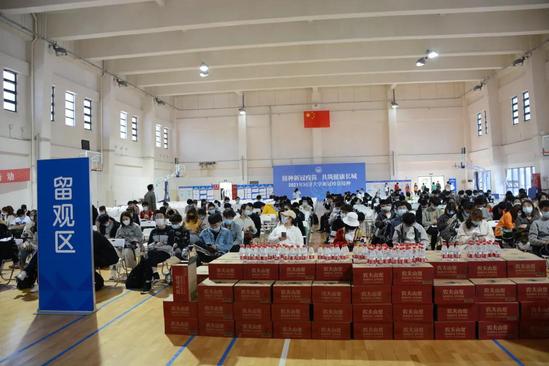 今天上午,上海理工大學(xué)新冠疫苗臨時(shí)接種點(diǎn)正式啟用,師生們足不出校就能接種疫苗,日接種量將近5000人次。