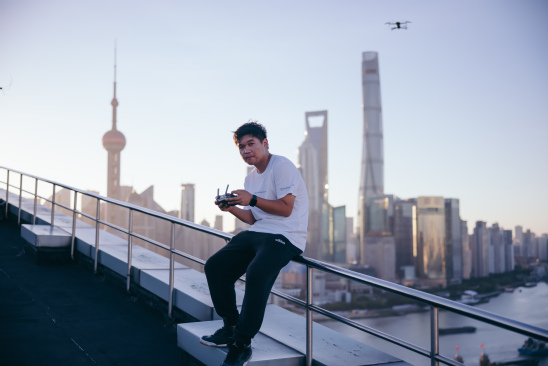 “我大概上輩子是一架飛機,特別喜歡用無人機替我飛上天空俯視整個城市,喜歡城市里的車水馬龍,喜歡入夜后的光影燦爛,每一次成功的拍攝都讓我回味無窮。”為了進行日出的延時攝影,欒博翔經常凌晨三點多起床,一拍就是三四個小時,卻從來不覺得累。美麗的校園和繁華的城市則為他的創(chuàng)作提供了現(xiàn)成的素材庫,從紅墻綠瓦的滬江園,到高樓林立的陸家嘴、串流不息的高架橋……城市生長的力量被他一一記錄在相機里。