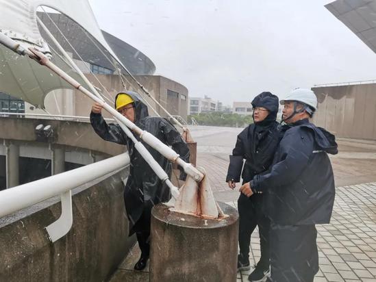 上海理工大學(xué)堅(jiān)持師生至上、生命至上,黨員領(lǐng)導(dǎo)干部帶頭值守、靠前指揮,實(shí)施24小時(shí)視頻監(jiān)控,動(dòng)態(tài)發(fā)布安全預(yù)警信息;線下多舉措落實(shí)防汛措施,強(qiáng)化安全巡邏并深入一線重點(diǎn)區(qū)域排查消除安全隱患,全力確保學(xué)校安全度汛。