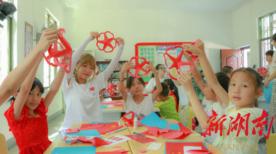 愛心助學,情暖鄉村。在兵書閣村,實踐團在縣溪鎮鍋沖鄉小學開展了以“初心憶黨史,剪繪贊中國”為主題的黨史微課堂。通過聽、講、頌、答、唱等互動互學,帶領小朋友以生動活潑的形式認識具有重要意義的黨史轉折點、時間線,通過剪紙和拼貼畫的新穎形式拓寬紅色教育范圍,鼓勵鄉村兒童也能賡續紅色基因,講好黨史故事。